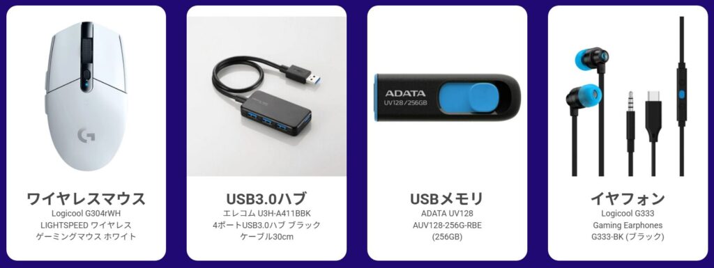 25歳以下の会員限定で、新品パソコンの購入で、豪華周辺機器が1点プレゼントされます。。マウス、ハブ、USBメモリ、イヤホンの中からお好きなものを選んでエントリーしましょう!